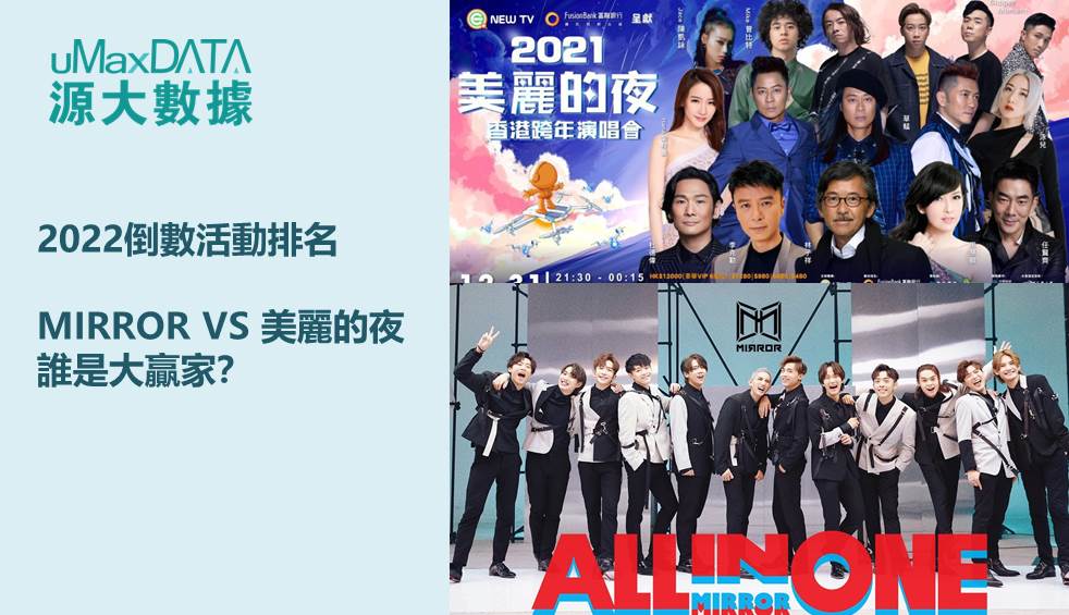 源大數據從各大社交媒體中,找出12月27日至12月30日期間,選出以下5個在網絡上討論度最高的除夕活動,並歸納以熱度值排名。在三場音樂會中,西九文化區的香港跨年倒數演唱會和中環海濱的《美麗的夜》跨年演唱會2021,分別有年輕新進偶像和殿堂級歌手坐陣,陣容強大。到底網絡上哪個討論呼聲最高?