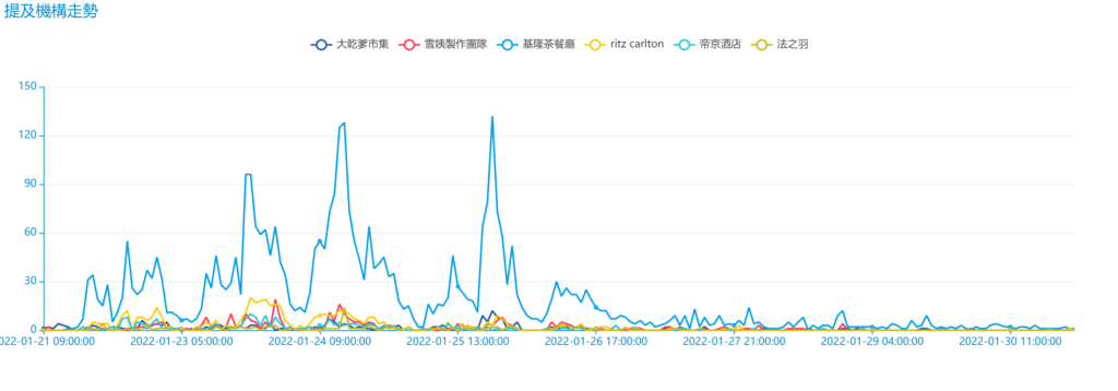 例如在雪姨事件中,她於1月21日第一次道歉後,詞雲圖中網民討論最多的字詞分別是市集 (583次)、廣告(532次)、基隆茶餐廳(418次)。且相關話題的討論熱度更是愈來愈高,可見網民並不買帳此道歉帖文,亦可預視到之後危機擴散的方向。如雪姨能在事件早期了解網民的想法和期望,以合適的方法處理事件,最終或可挽回其形象。