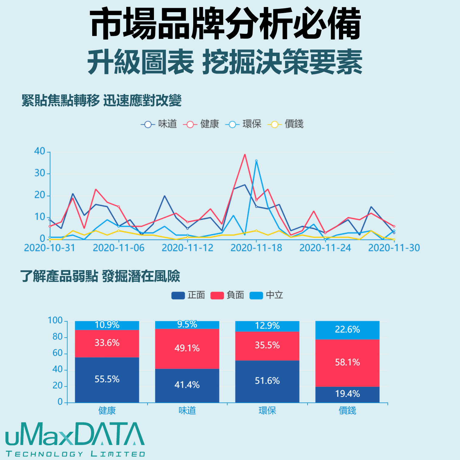利用升級版的趨勢圖,決策者可以觀察到市場焦點的轉移,從而知道網民最關心哪方面、討論焦點是否符合品牌宣傳目標等,迅速調整市場策略。