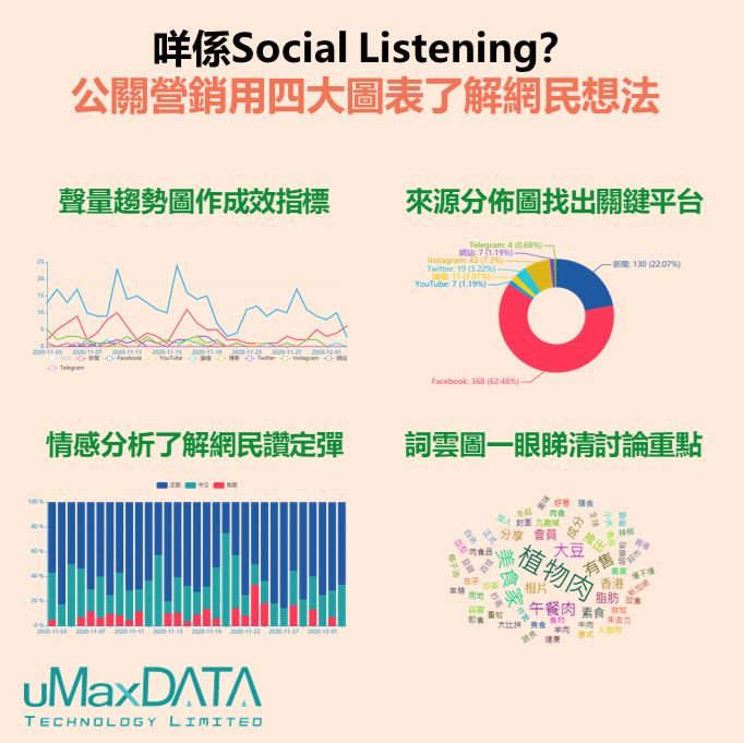 但不同平台的受眾不同,其關注點和取向亦有所不同,就算知道在Facebook上討論最熱烈,卻未能得知網民在說什麼,亦難作針對性宣傳。