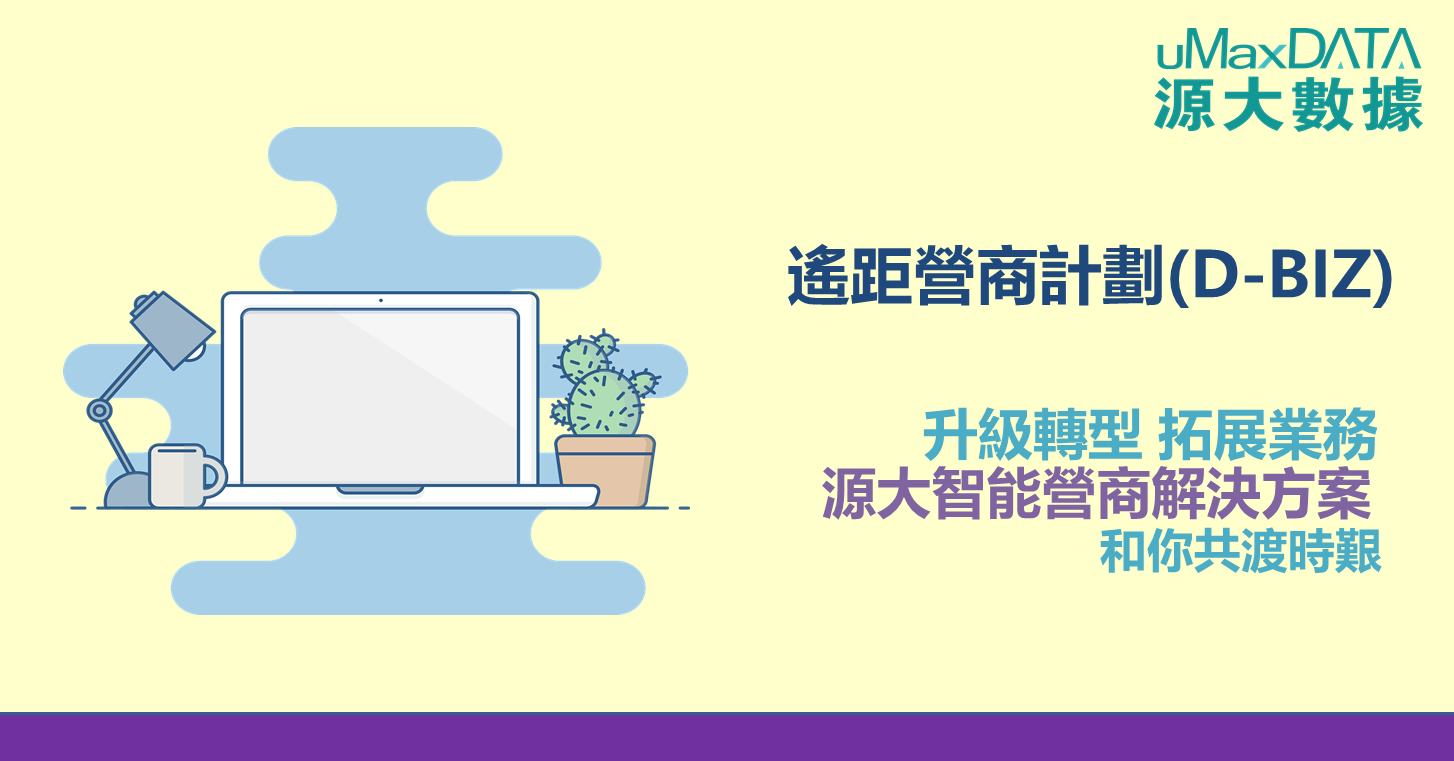政府提出的遙距營商計畫(D-BIZ)加碼,社企、二次申請均納入計劃,源大為計畫供應商名單之一,歡迎查詢了解更多智能營商方案。源大數據D-BIZ供應商參考編號:SP-856-975,歡迎查詢