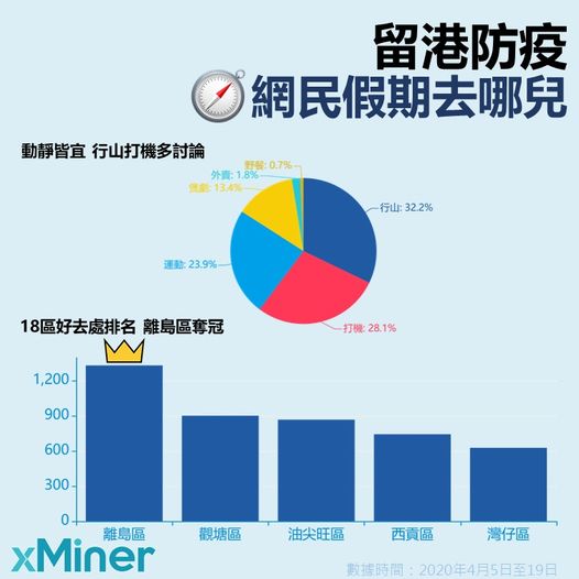 在眾多活動中,最多人提及「行山」,包括到郊野公園和行山徑郊遊等,佔整體逾三成聲量,反映不少香港網民渴望親近大自然。